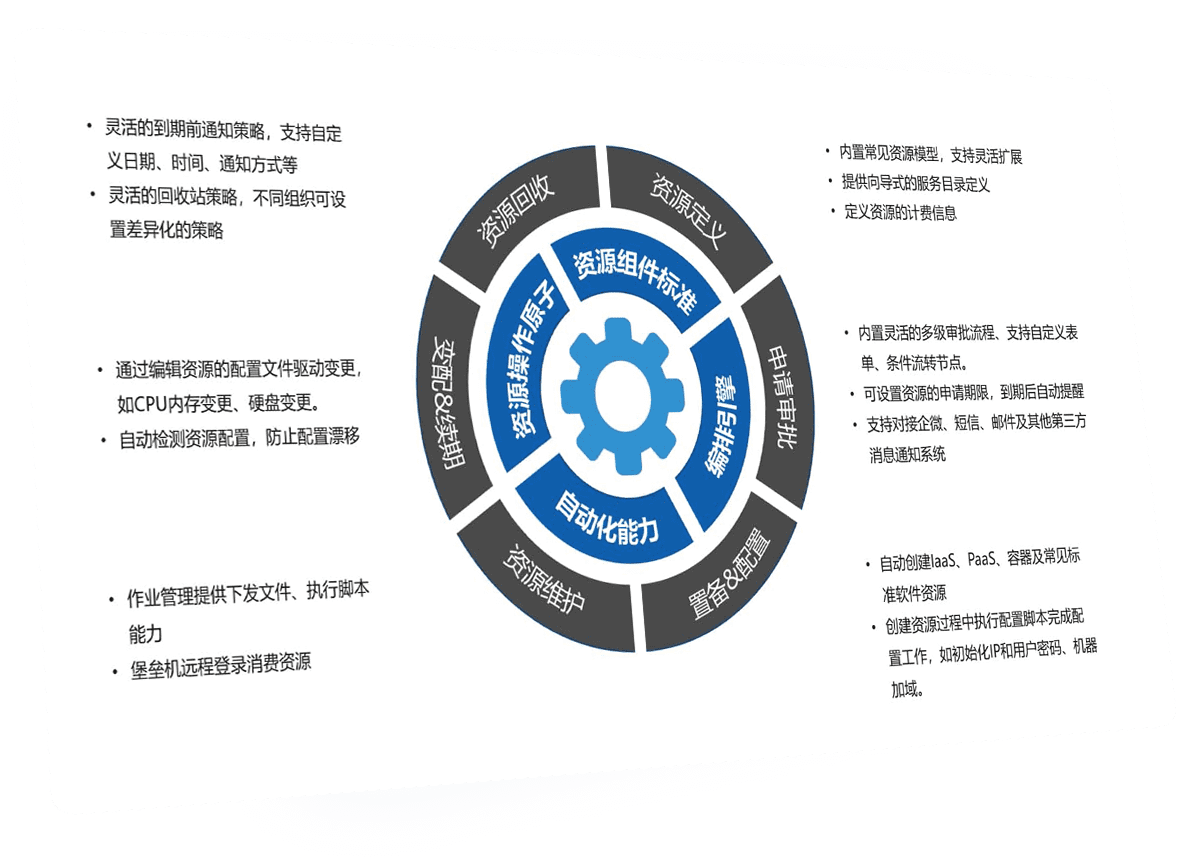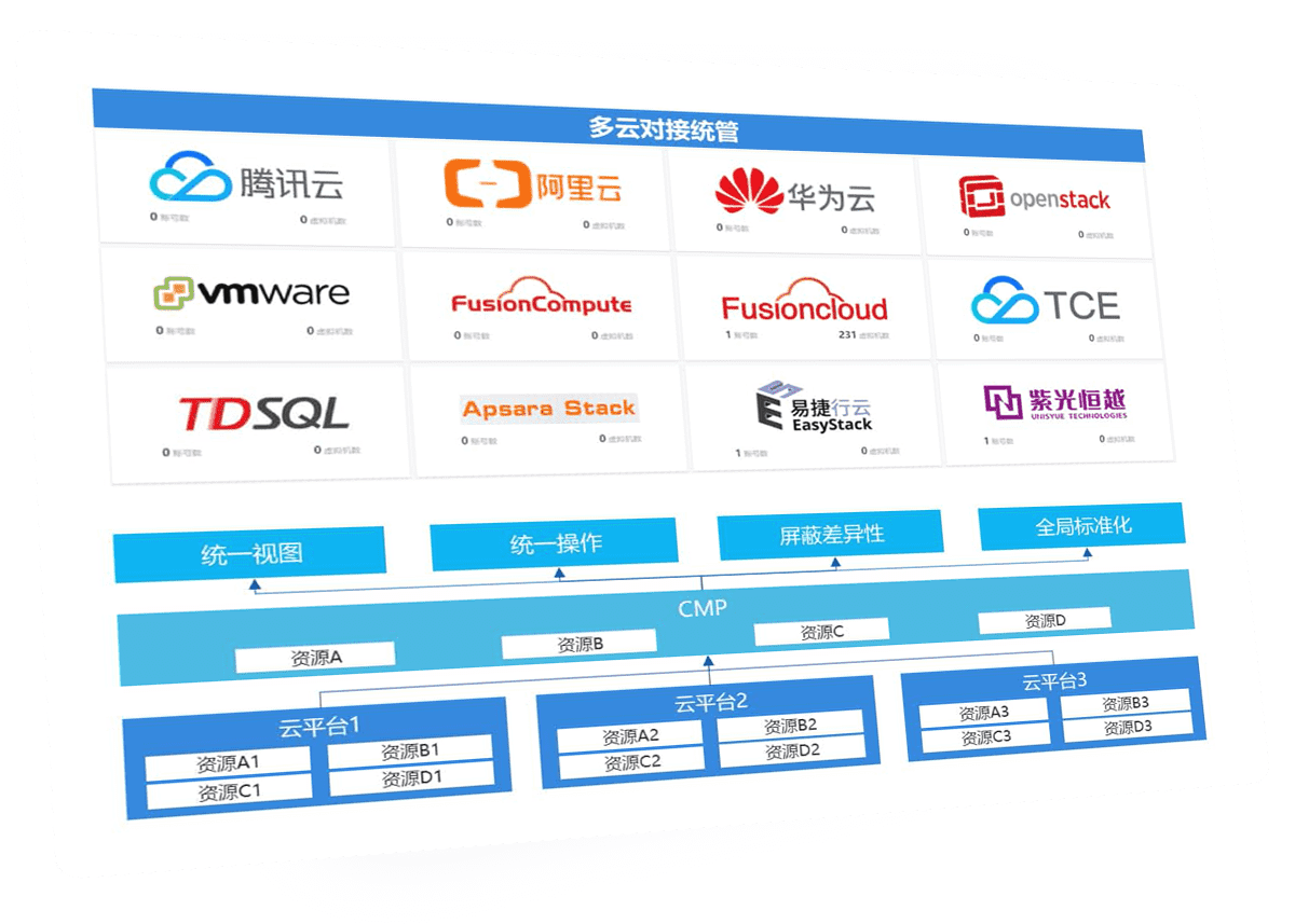云:對云平臺及云資源的全面納管,將云資源組件化,支持快速對接及管理場景擴展。