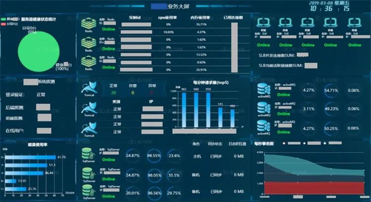 通過藍鯨平臺對接各個模塊及外部數據源,加上可視化工具 “監控大屏”,運維管理者可以對“全局”一目了然,利用所見到的實時數據進行決策分析,進行故障定位和故障處理。