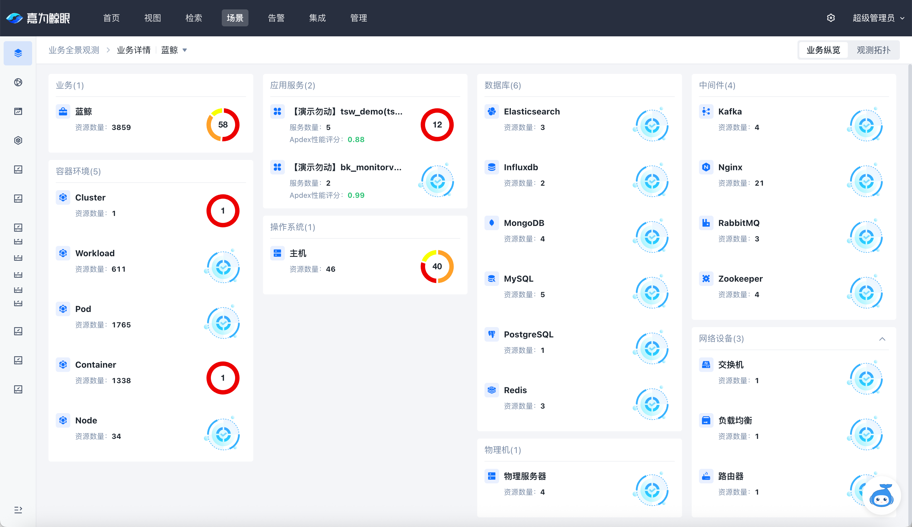 不管是業務、應用服務、容器資源,還是各類中間件、數據庫等資源,都能在這清晰呈現,業務資源監控狀態一目了然。有了它,可快速定位到有問題的資源,讓運維排障效率直接拉滿,誰用誰知道!