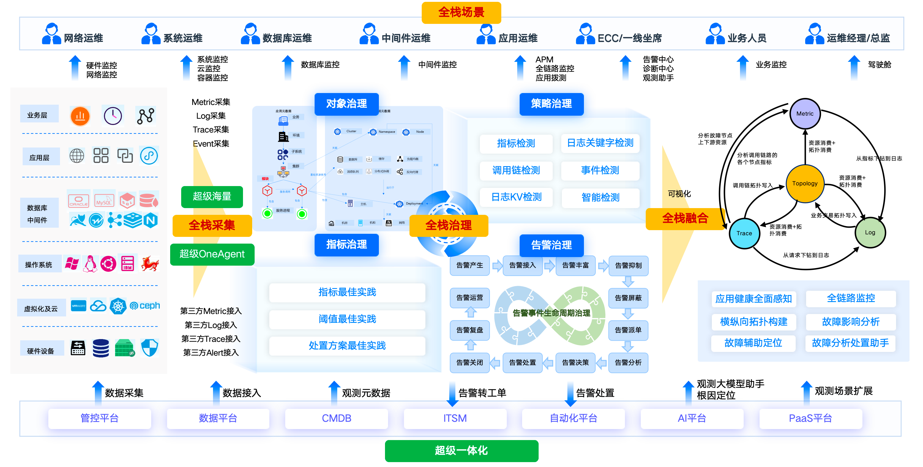 在數字經濟加速滲透的今天,企業IT架構日益復雜,業務系統的穩定性與可觀測性成為支撐業務持續運轉的核心支柱。從基礎資源到上層應用,從技術指標到業務場景,如何打破數據孤島、實現全棧統一觀測;如何借助智能技術提升IT故障響應效率,成為企業數字化轉型中亟待解決的兩大關鍵問題。