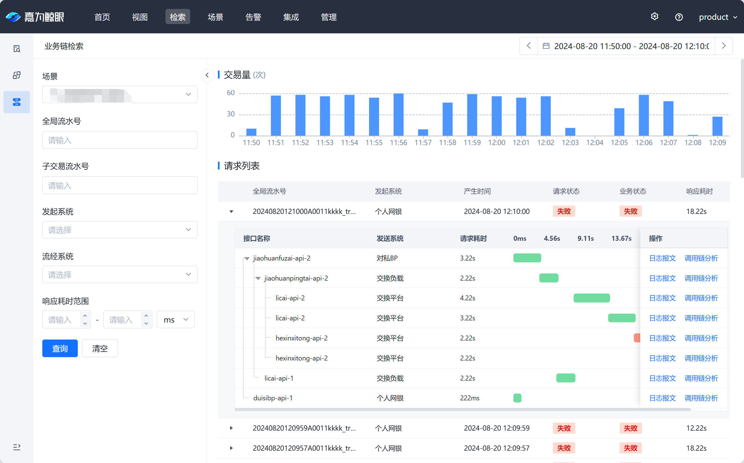 從請求到響應,秒級追蹤每一筆業務軌跡,多維數據自由鉆取,讓系統運行故障盡在掌握!