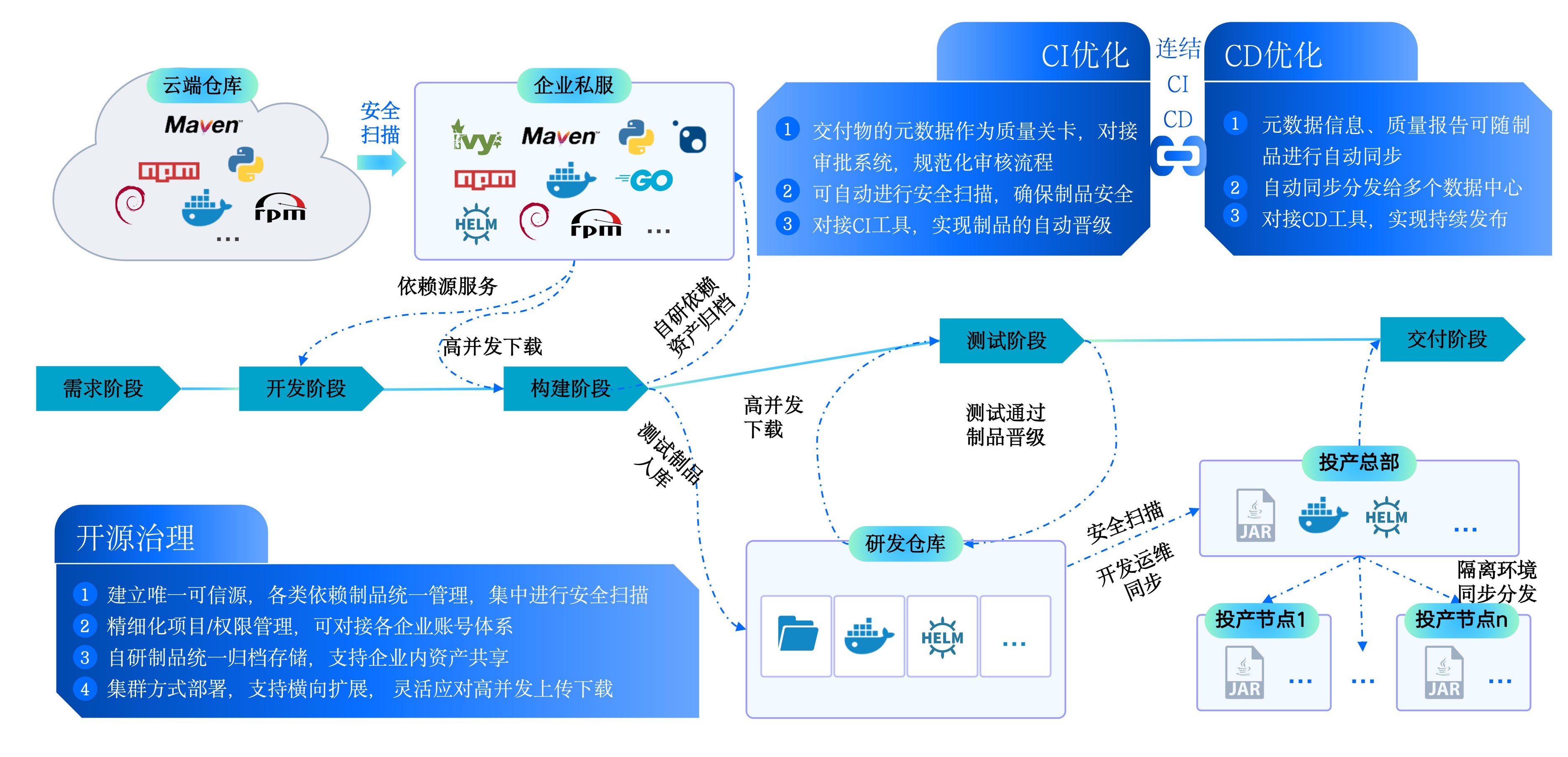 數字化轉型加速推進的當下,軟件開發的規模與復雜性呈指數級增長,企業對軟件制品的管理需求日益迫切。JFrog作為國際知名二進制制品管理工具,雖長期支撐企業存儲管理需求,但在適配國內標準、響應本土服務及保障技術自主等方面的局限性日益凸顯。