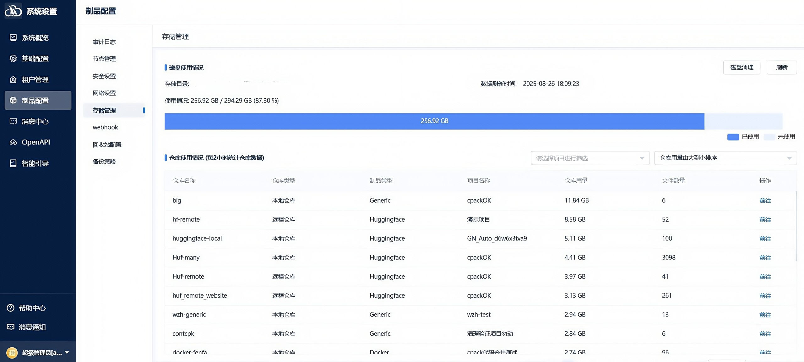 嘉為藍鯨制品庫支持一次性買斷模式,長期使用成本較年費模式降低70%以上;其基于校驗和的去重存儲技術,存儲層面靈活兼容文件系統與S3協議對象存儲,可減少50%以上的冗余數據,通過配額管理有效管控倉庫存儲情況,配合自動清理長期未使用制品的規則,能節省60%的存儲資源。