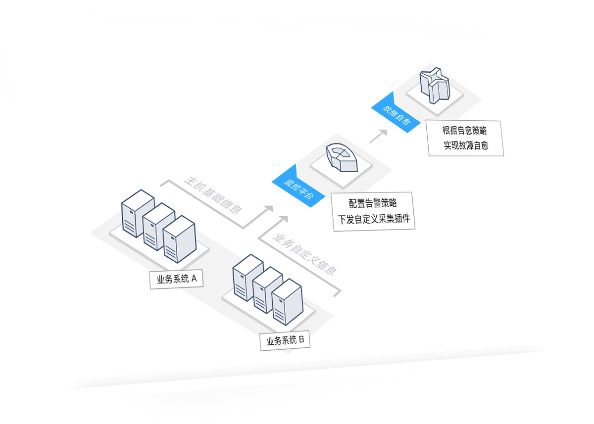 藍(lán)鯨智云通過“可視化運(yùn)維”、“標(biāo)準(zhǔn)化運(yùn)維”、“自動(dòng)化運(yùn)維”實(shí)現(xiàn)對(duì)業(yè)務(wù)的“監(jiān)管控”一體化操作,監(jiān)控平臺(tái)對(duì)接業(yè)務(wù)的各類指標(biāo)數(shù)據(jù),配合故障自愈的處理策略,實(shí)現(xiàn)基礎(chǔ)運(yùn)維工作的無人值守,這種依托于藍(lán)鯨 PaaS,有別于傳統(tǒng)的 CS 結(jié)構(gòu),使整個(gè)藍(lán)鯨智云產(chǎn)品體系中形成監(jiān)控的閉環(huán)能力。
