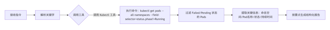 • 結構化輸出核心字段:自動關聯事件涉及的對象(Pod/Node)、原因(Reason)、狀態詳情(Message)及首次/末次出現時間戳,確保完整覆蓋故障上下文。