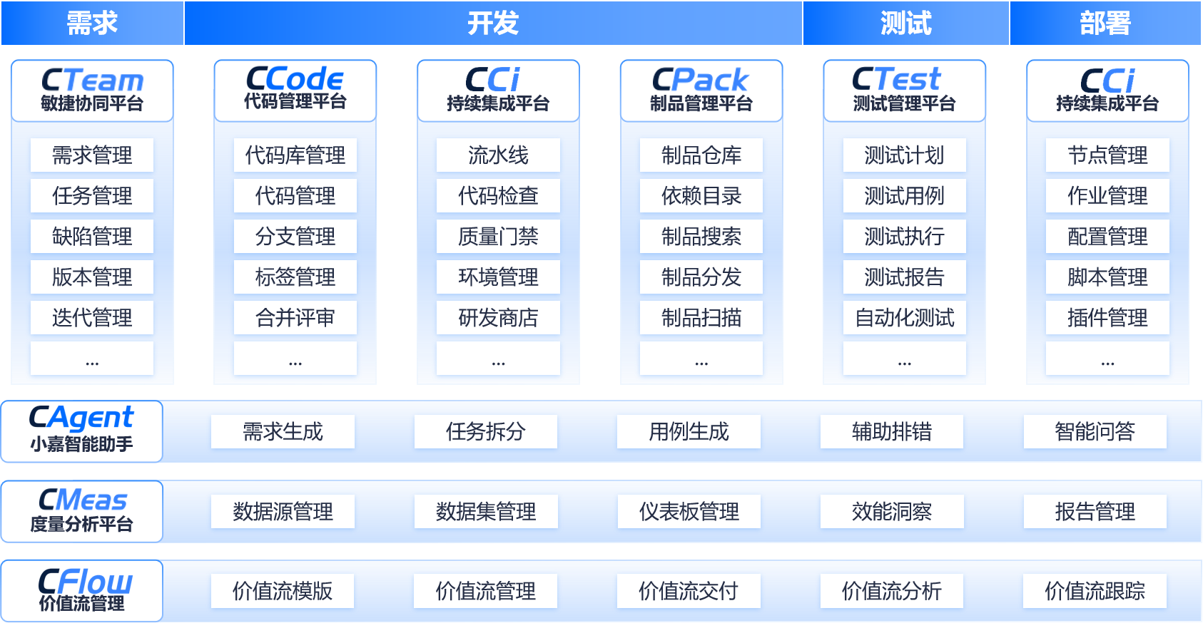 在研發(fā)效能領域,嘉為藍鯨DevOps一站式研發(fā)效能解決方案以“全流程自動化+可視化管控”為核心,構建起覆蓋研發(fā)全生命周期的一體化能力矩陣。