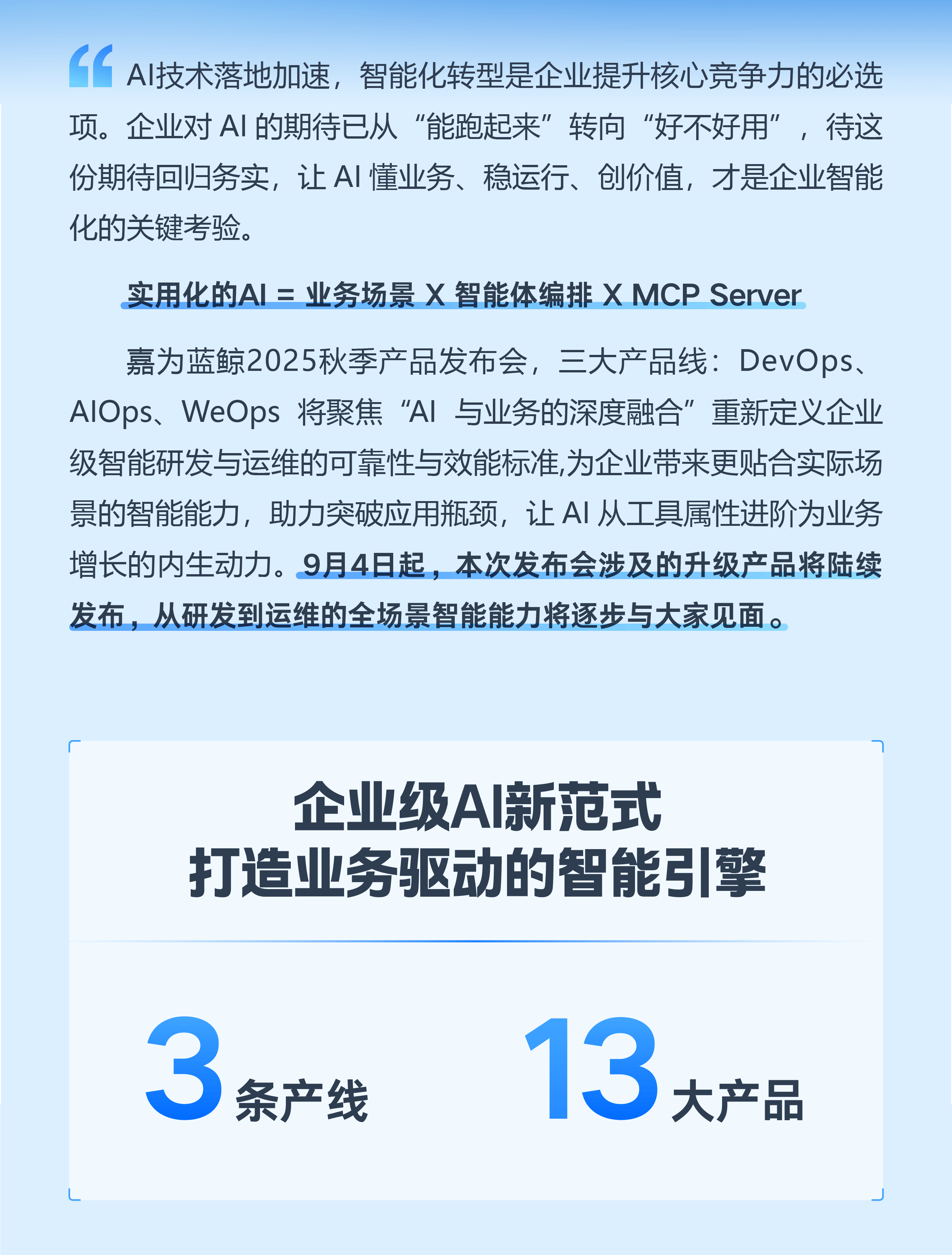 9月4日起!嘉為藍鯨2025秋季發布會啟幕,13大產品煥新,開啟IT研運智能新程